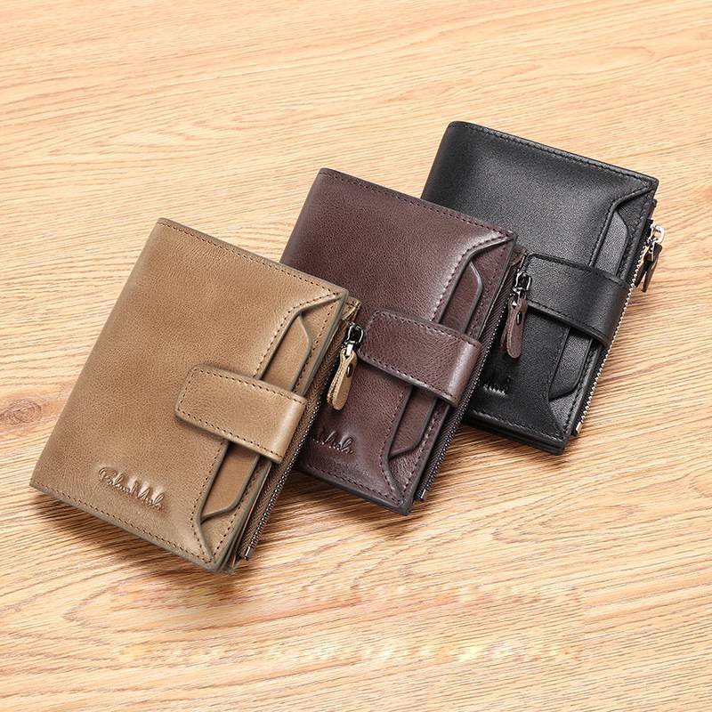 European and American Multifunctional Cowhide Leather Slim Wallet with Clasp Closure