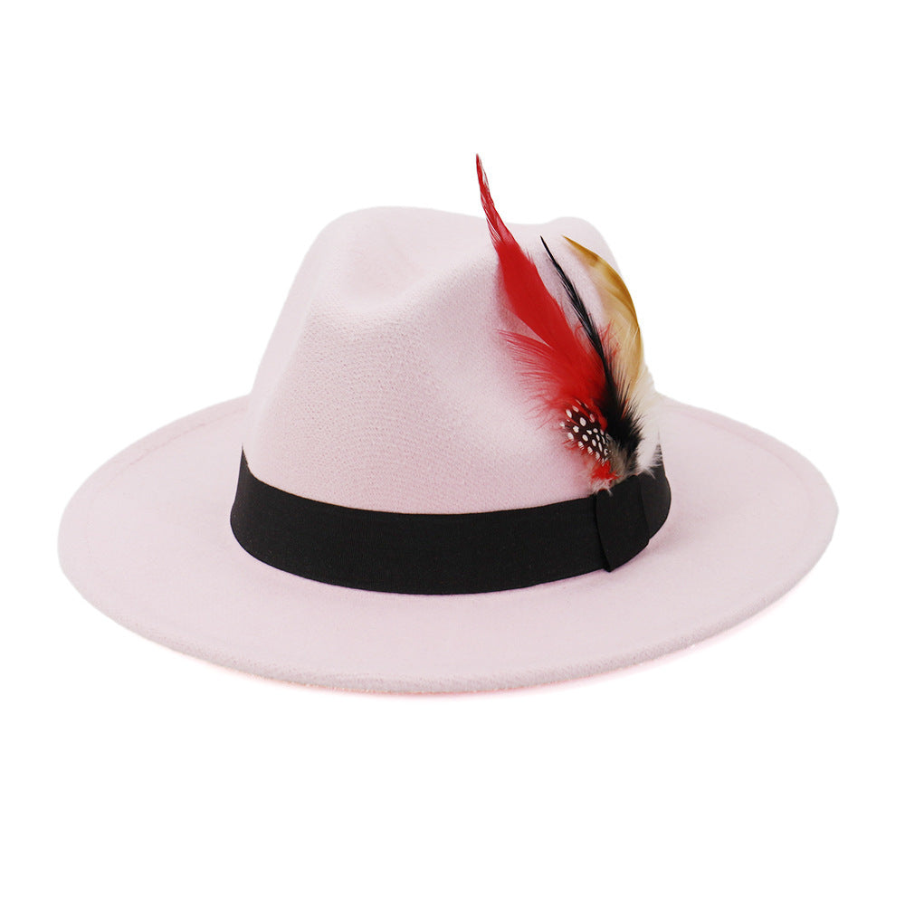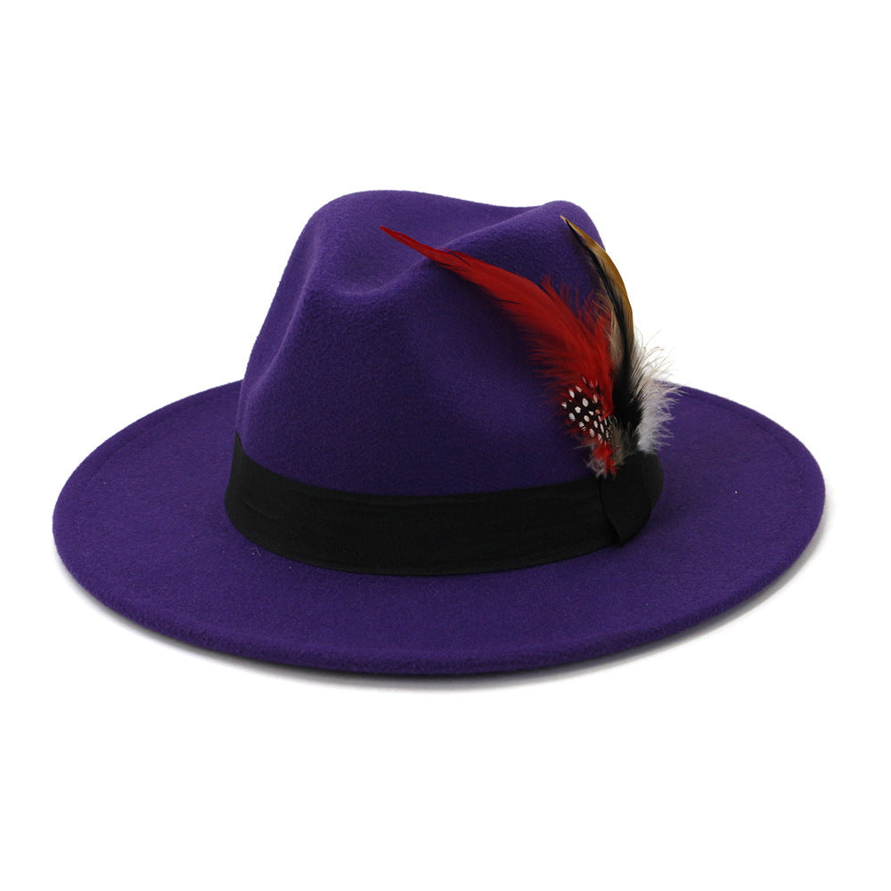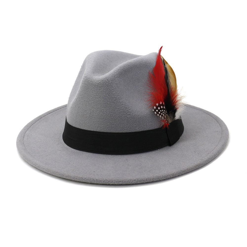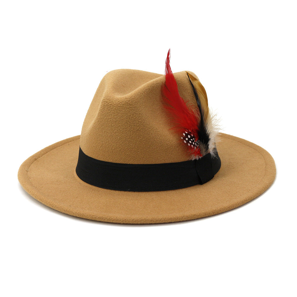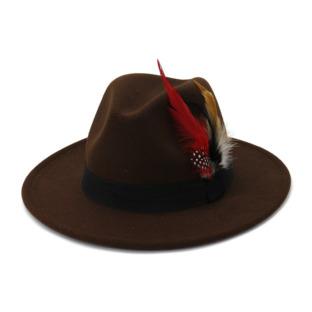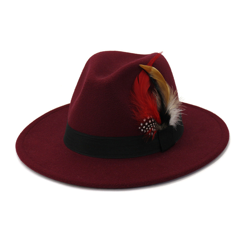 Adult Wide Brim Fedora Hat with Feather Band - Vintage Style for Church & Parties