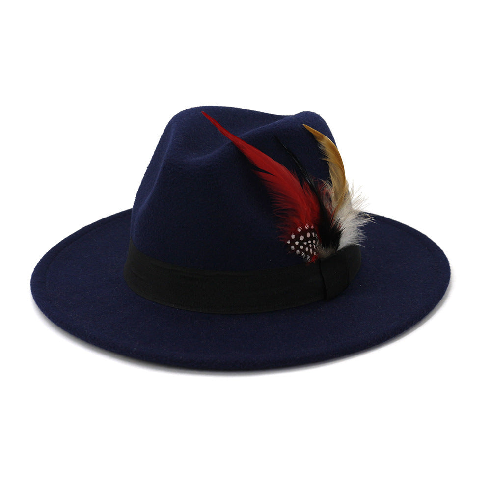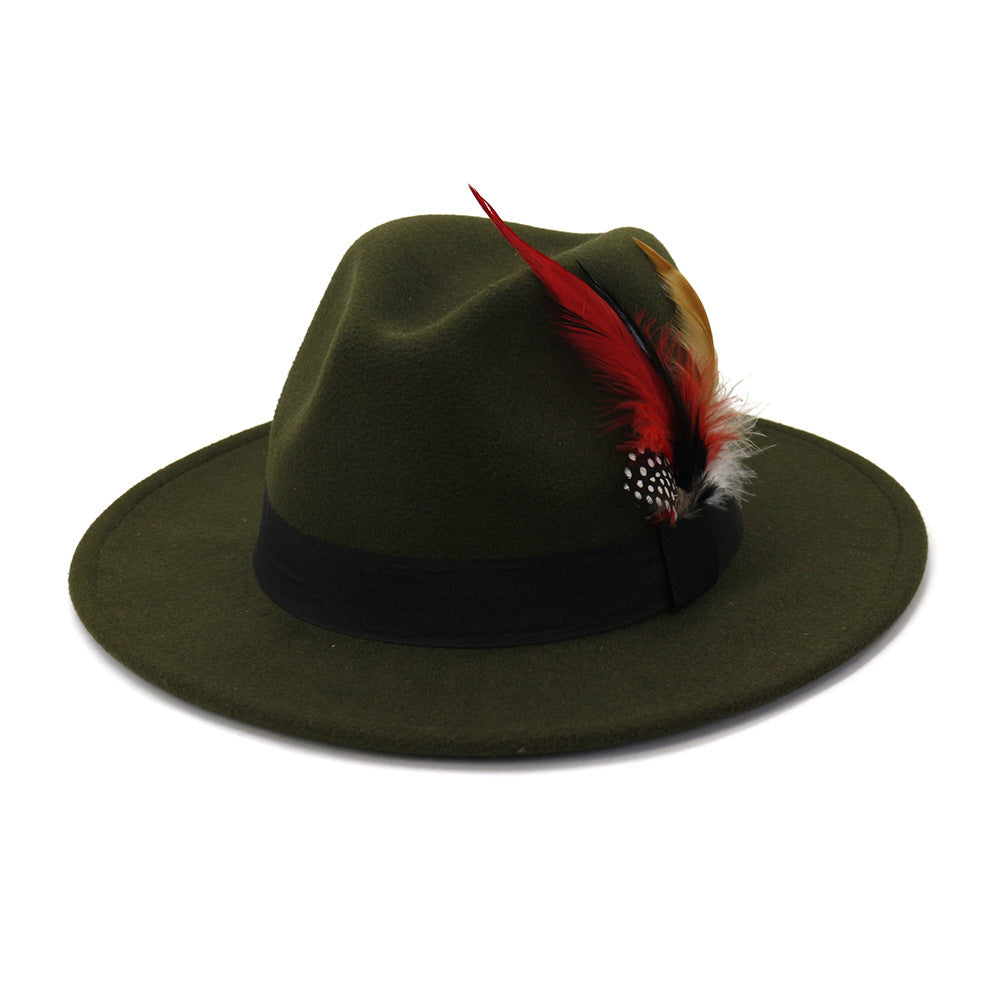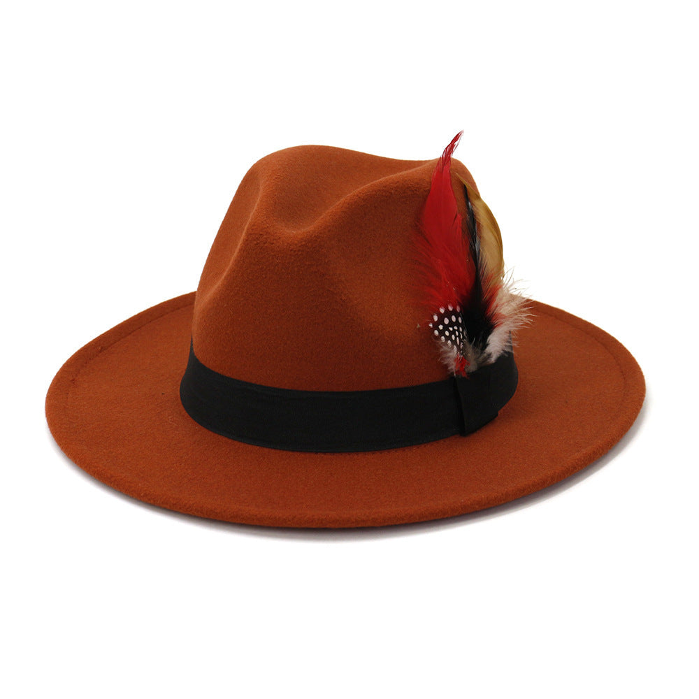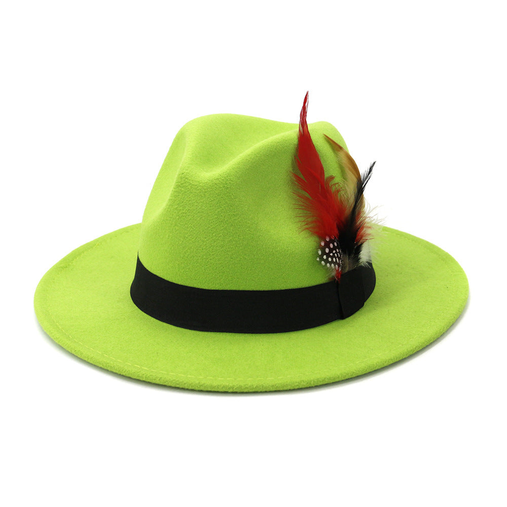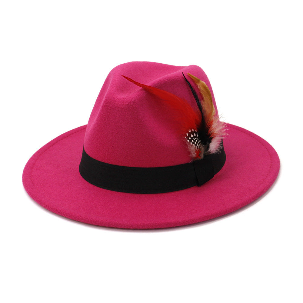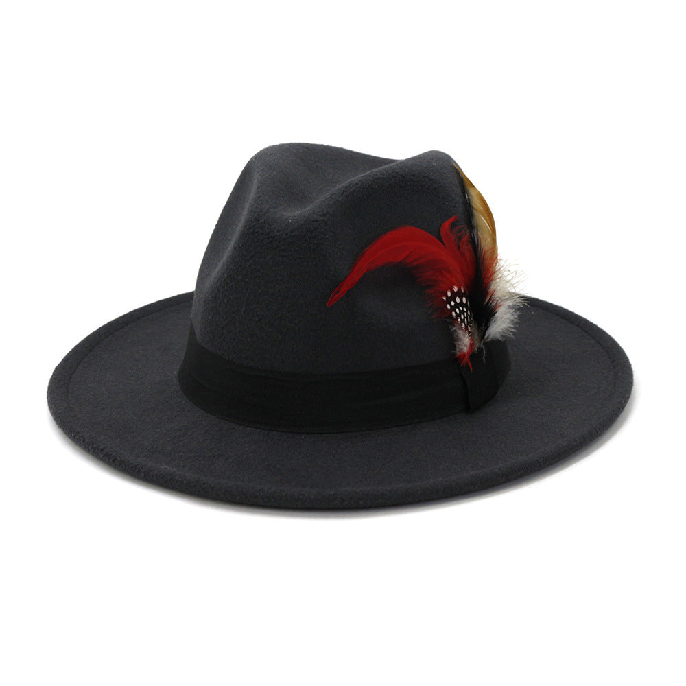 Adult Wide Brim Fedora Hat with Feather Band - Vintage Style for Church & Parties