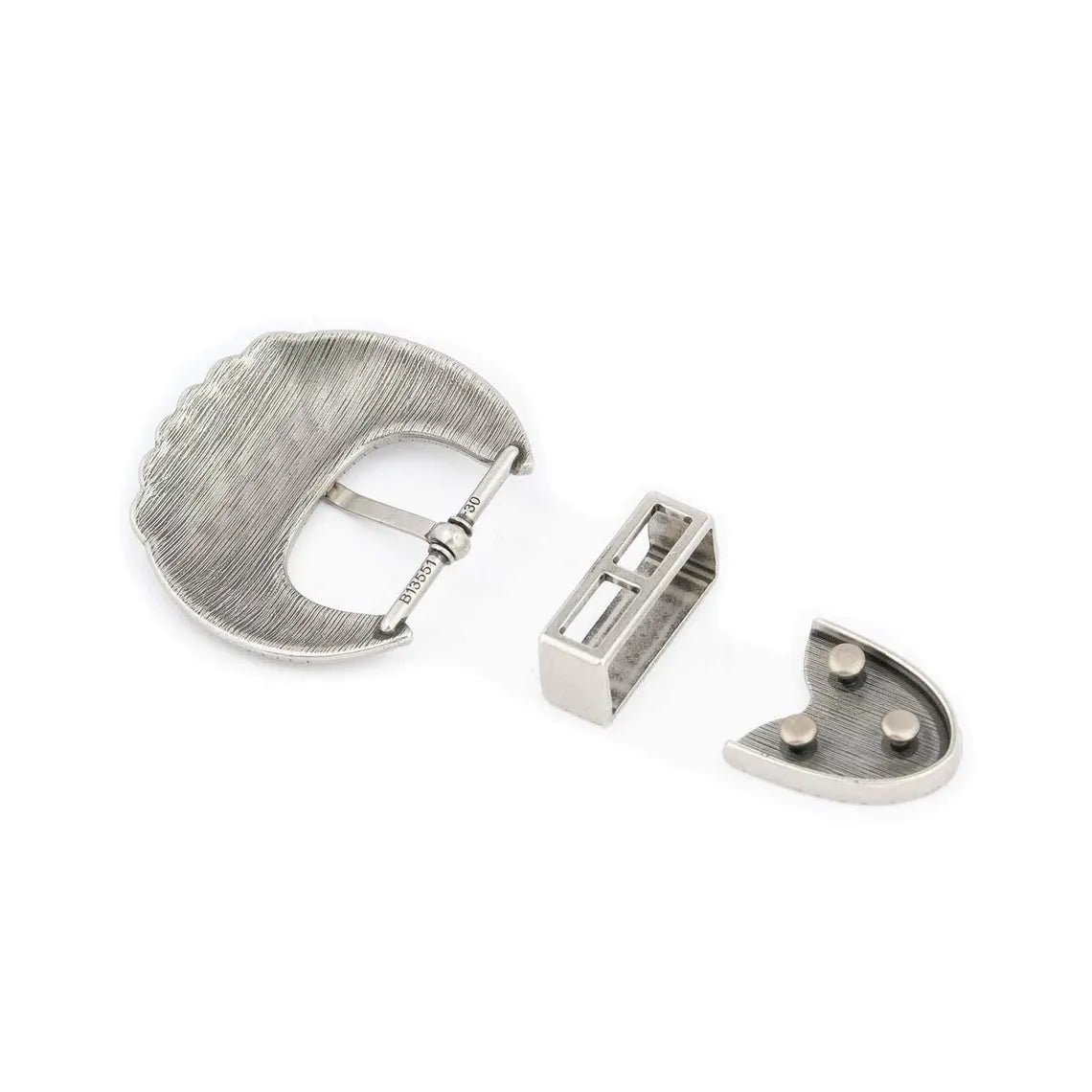 3-Pc Set Antique Silver 30mm Western Flower Belt Buckle for Men DIY Leathercraft