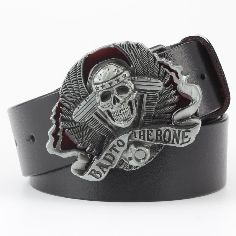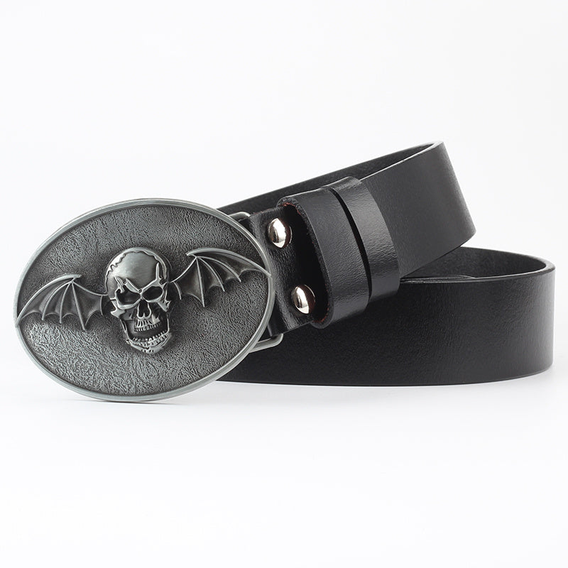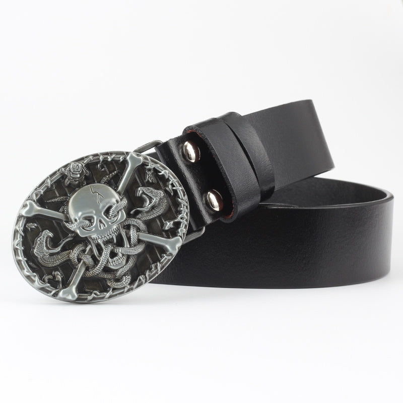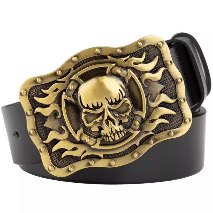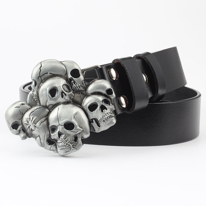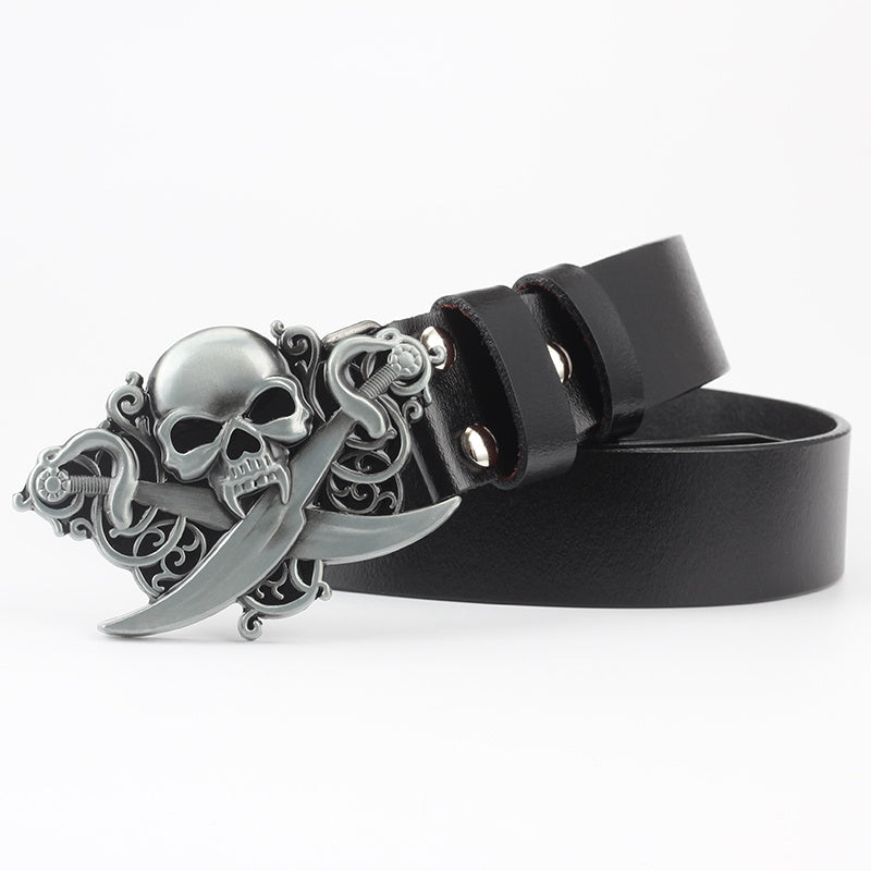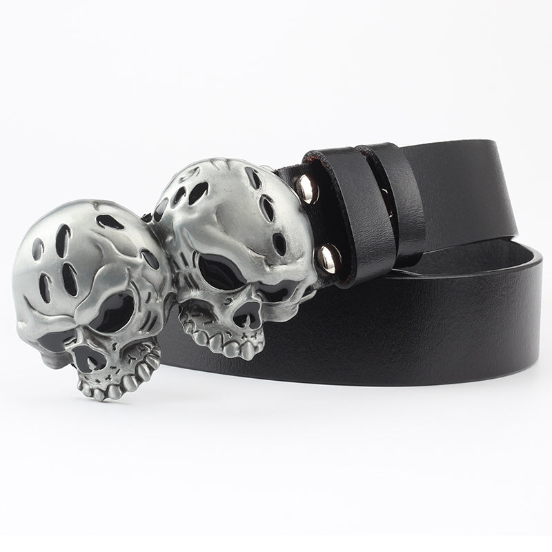 Casual Skull Decorative Two-layer Cowhide Belt