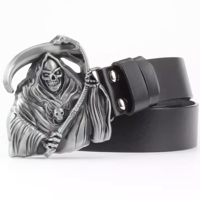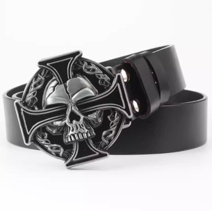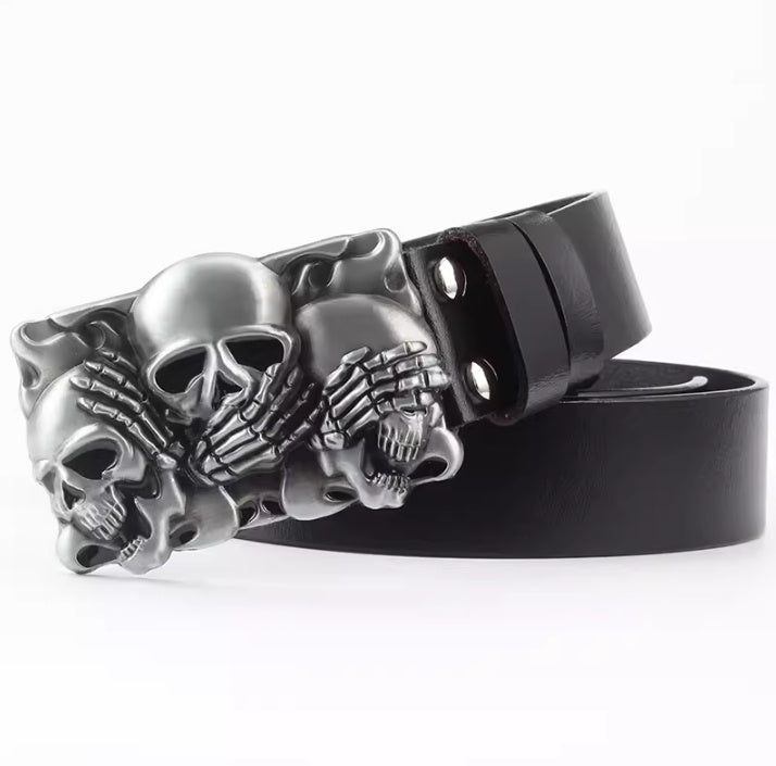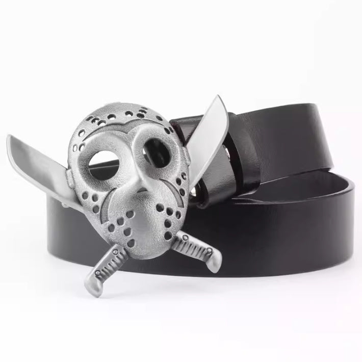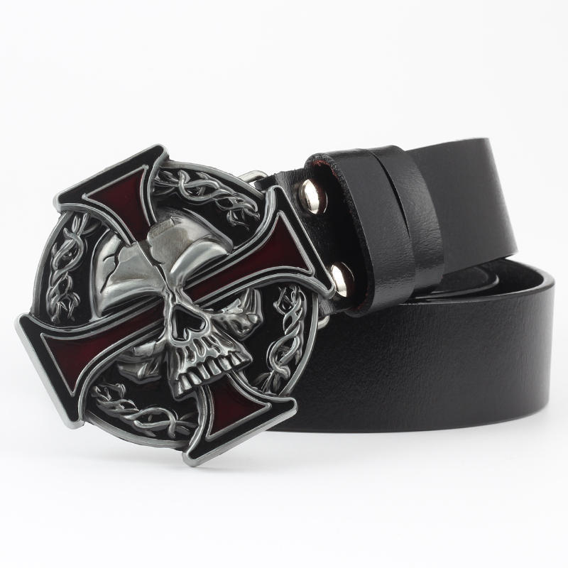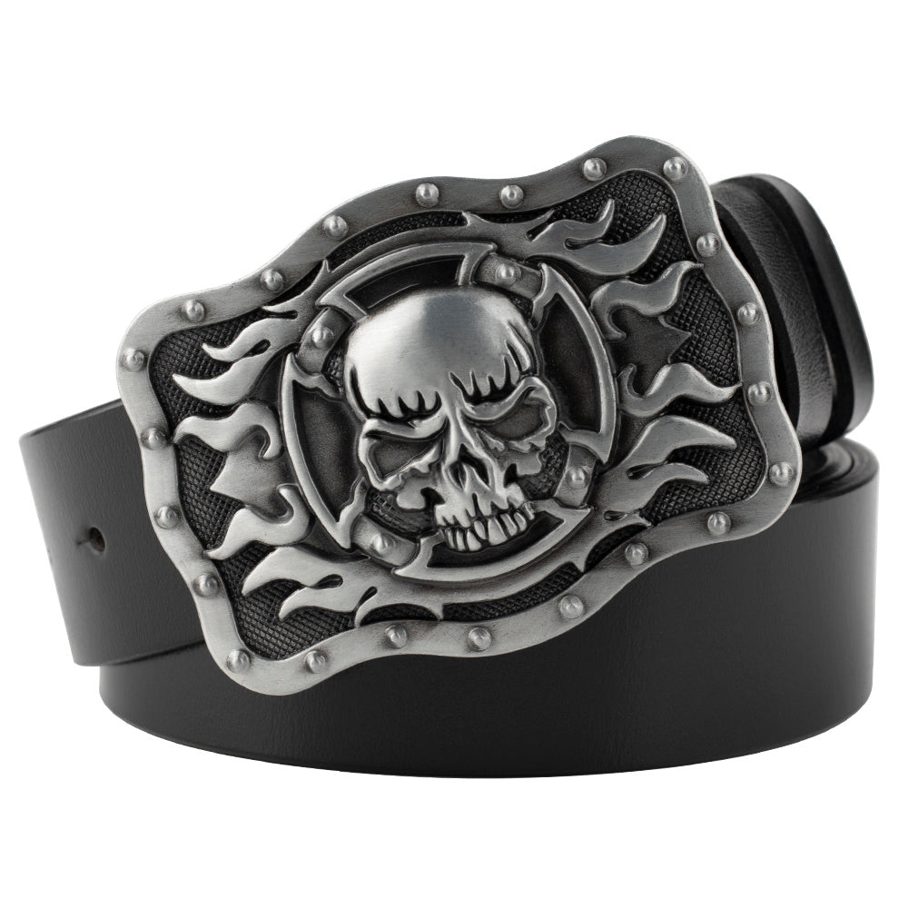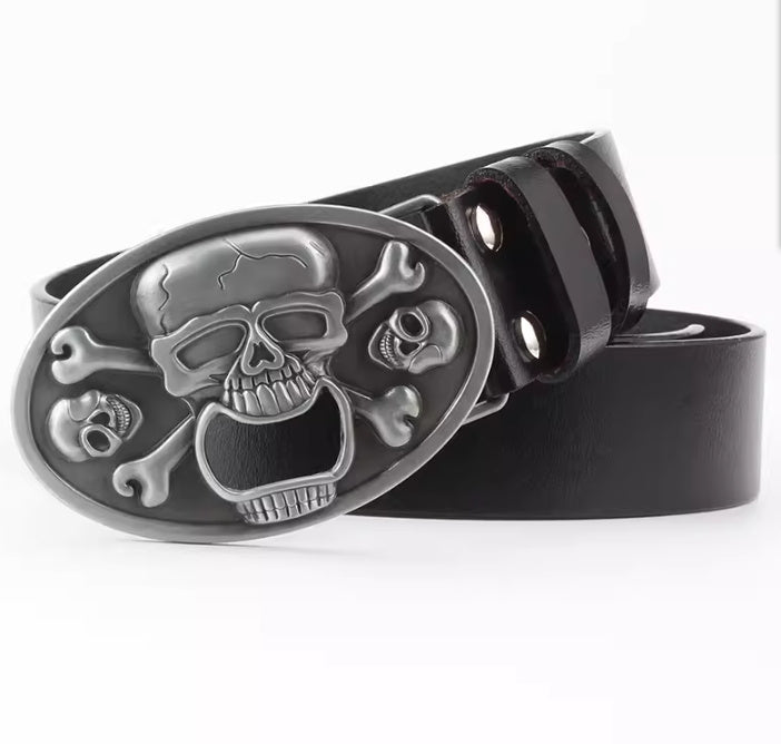 Casual Skull Decorative Two-layer Cowhide Belt