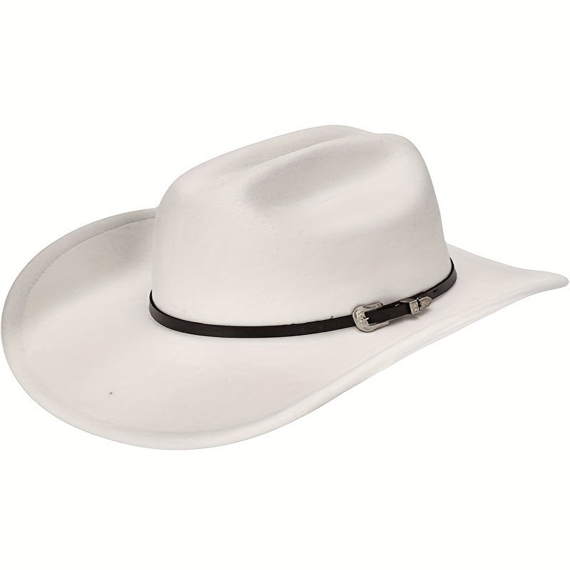 Classic Felt Wide Brim Western Cowboy Hat for Men & Women with Buckle Band