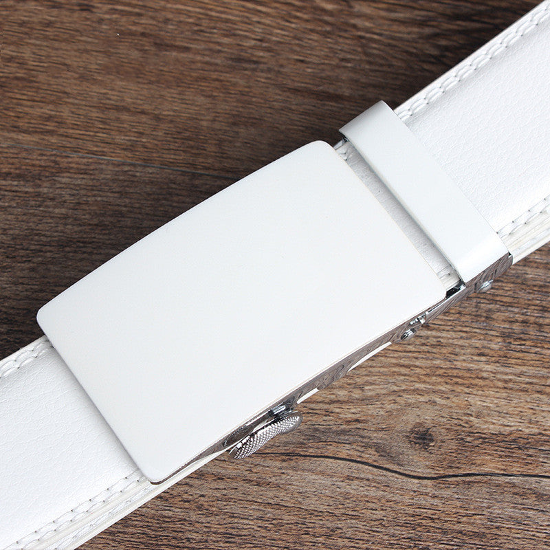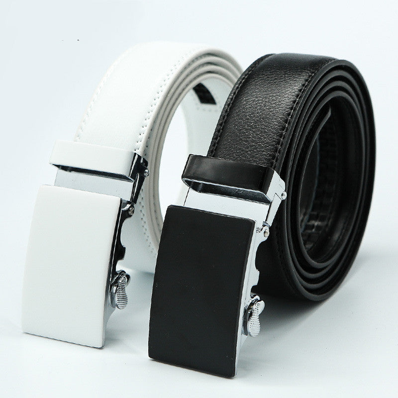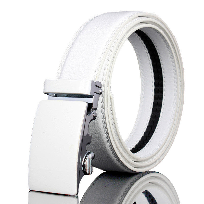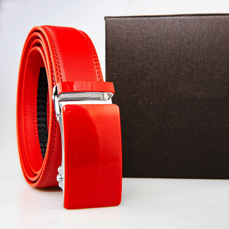 Stylish statement belt in glossy finish with automatic buckle. Available in multiple colors for casual style.